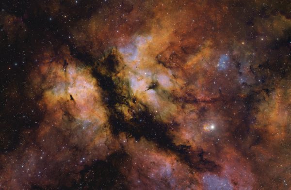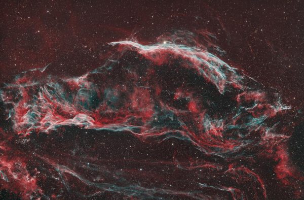 “If I want to isolate a specific gas in space – for this project I used my sulfur, hydrogen and oxygen filters – I order them from longest to shortest wavelength since it’s a false color pallet. So that’s why there’s oranges and blues and greens in that photo,” he says. “Typically, space is pretty red, since hydrogen is the most abundant element and it glows in that red color.”