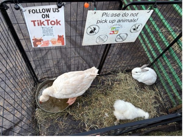The mobile petting zoo, Lozano Farms, brought an assortment of animals. There were smaller animals like a chicken, a duck and a bunny. Then larger animals like a donkey, a pig, a cow, a sheep, a goat and two alpacas.
